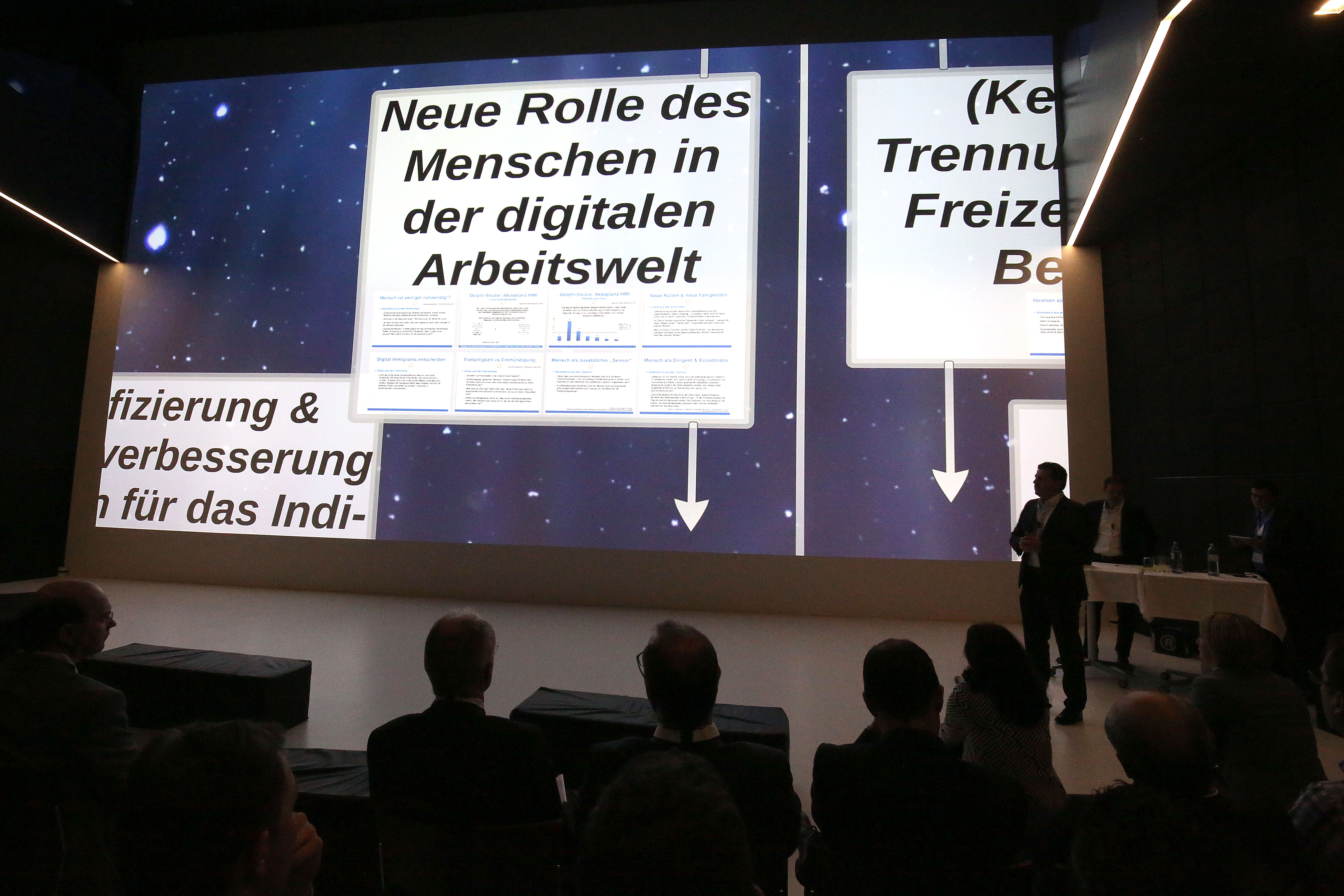 Mit rund 70 Gästen war der Deep Space des Ars Electronica Centers Linz bei der Präsentation der ersten Ergebnisse des „Human-Time-Machine – Zukunftsradars 2030“. bis auf den letzten Platz gefüllt. Unter den Reisenden in die Zukunft der Industrieproduktion waren Unternehmensvertreter der voestalpine, Palfinger AG, AVL List GmbH, Engel, Primetals Technologies Austria, Robert Bosch AG, PHOENIX CONTACT, SKIDATA, STIWA Automation, Salvagnini Maschinenbau GesmbH, Greiner, Keba, Trumpf uvm. (PR Arbeit | Text: Dr. Franz-Georg Lachner: Haslinger, Keck)