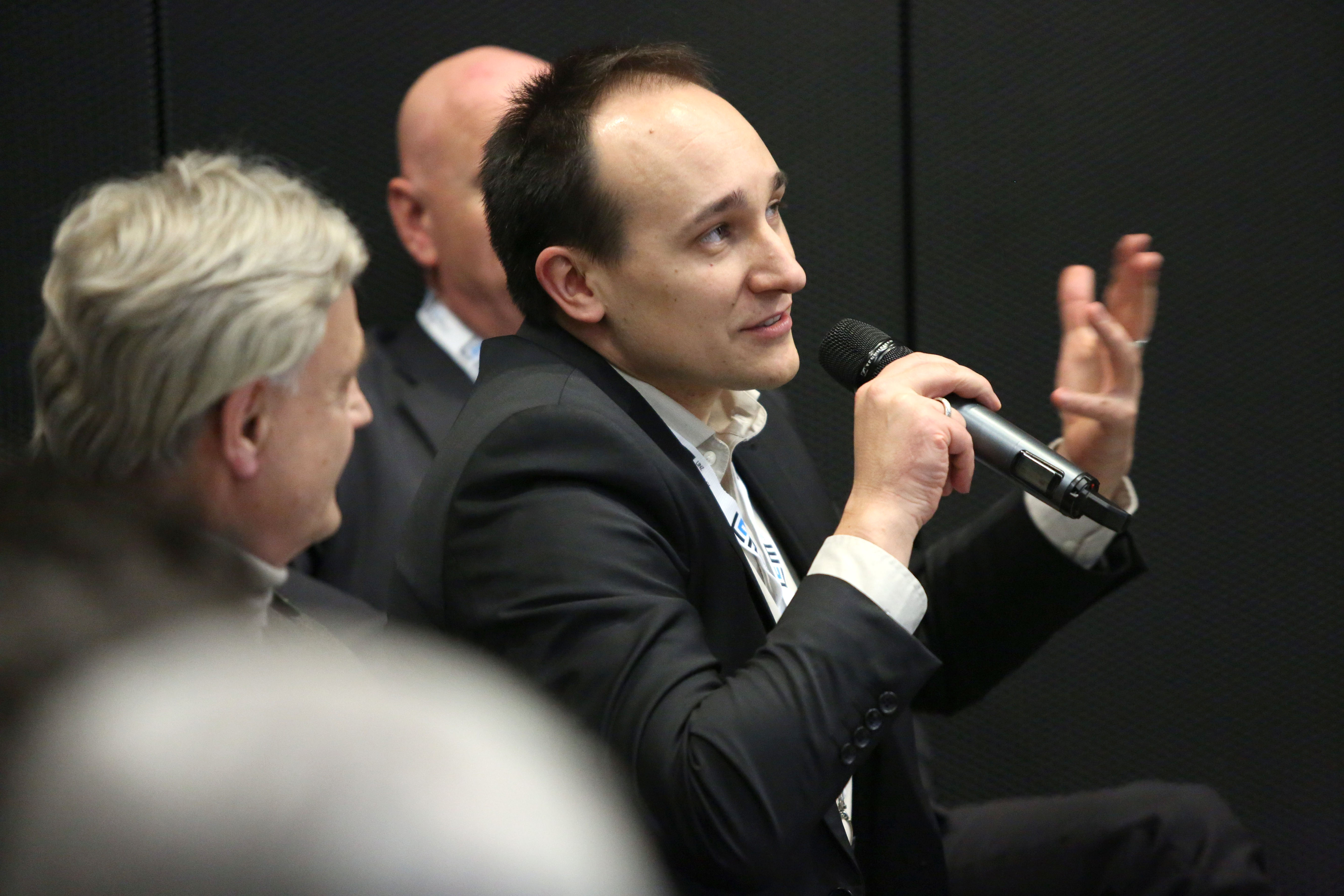 Bildcredits: LCM | Hermann Wakolbinger: Im Bild: Dr. Thomas Buchegger, Linz Center of Mechatronics GmbH, Mag. Wolfgang Berger, Berger Consulting – Moderation