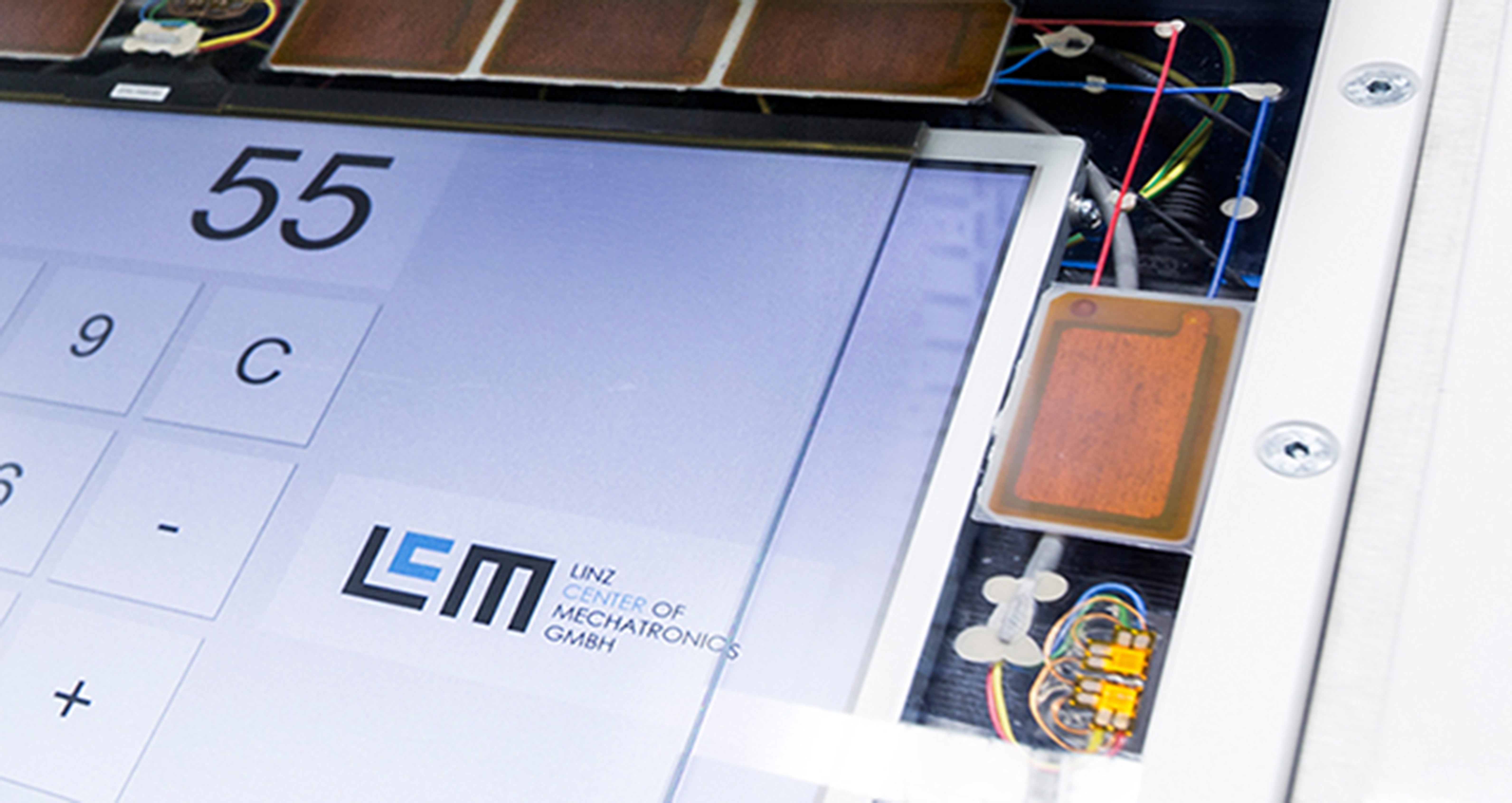 The Linz Center of Mechatronics GmbH (LCM) offers a novel touch screen with innovative features. The heart of the system is a transparent plate that is actively deformed by piezoelectric materials, and thus gives the operator a similar feeling as when pressing a conventional key.