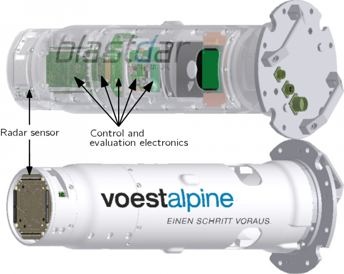 The distribution of the burden in a blast furnace which consists of alternating layers of different materials is an important process parameter for a stable and efficient blast furnace process. Gauging of the full three-dimensional (3D) surface in real time would be very beneficial. Until now, only insufficient measurement systems are available on the market. The implemented high resolution 3D imaging radar sensor overcomes the problems with former measurement systems and also withstands the harsh environment inside of a fully operative blast furnace, and is now in test operation. A whole radar sensor system, including the design of high-frequency hardware, digital-backend and software parts in combination with novel signal processing algorithms was developed.