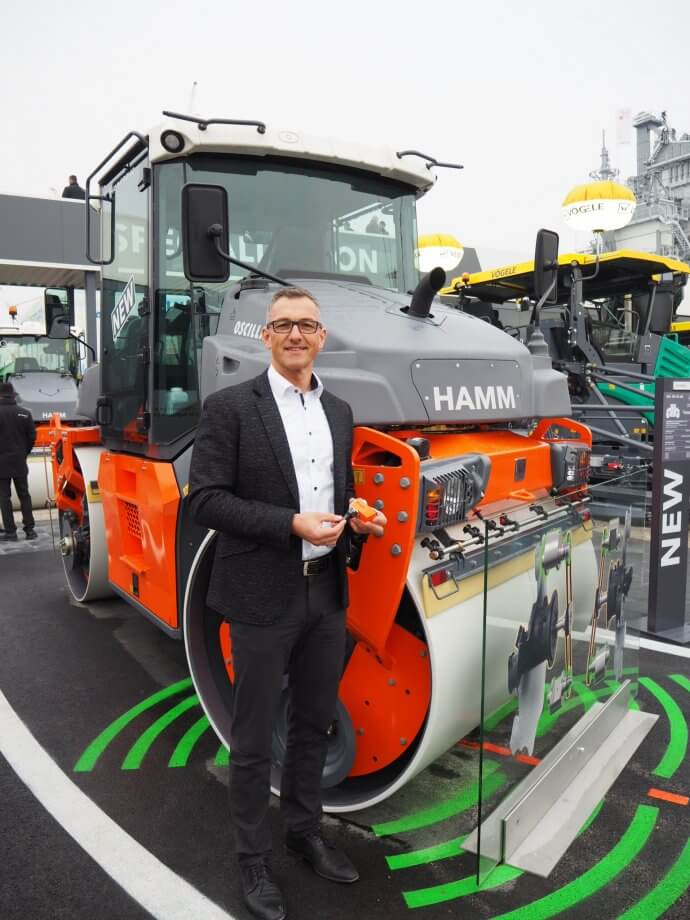 Linz, Tirschenreuth (Oberpfalz), April 2019 – It is a cumbersome term that conceals a patented world first in road construction: the so-called “split oscillation drum” significantly increases the compaction quality of road rollers. The two rollers working on one axis – the so-called “drums” – are oscillating separately. The innovation has been presented for the first time at the Bauma trade fair (8 to 14 April in Munich). The new generation of rollers is being built by Hamm AG. Linz Center of Mechatronics GmbH (LCM), as development partner, has taken care on the synchronization of the two motors driving the oscillation of the split drums. This was achieved once again with a digital-hydraulic approach which generates the necessary precise distribution of the volume flow to the hydraulic motors. Thanks to the synchronously oscillating drums a perfect roadway can be realized.