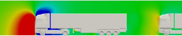 LCM im Flow: Wir haben einen automatisierten Workflow geschaffen, mit dem die Umströmung von Fahrzeugen in einem Simulationsmodell abgebildet werden kann. Damit lässt sich z.B. das Potential von Platooning für die Reduktion von CO2-Emissionen und Treibstoffverbrauch untersuchen.