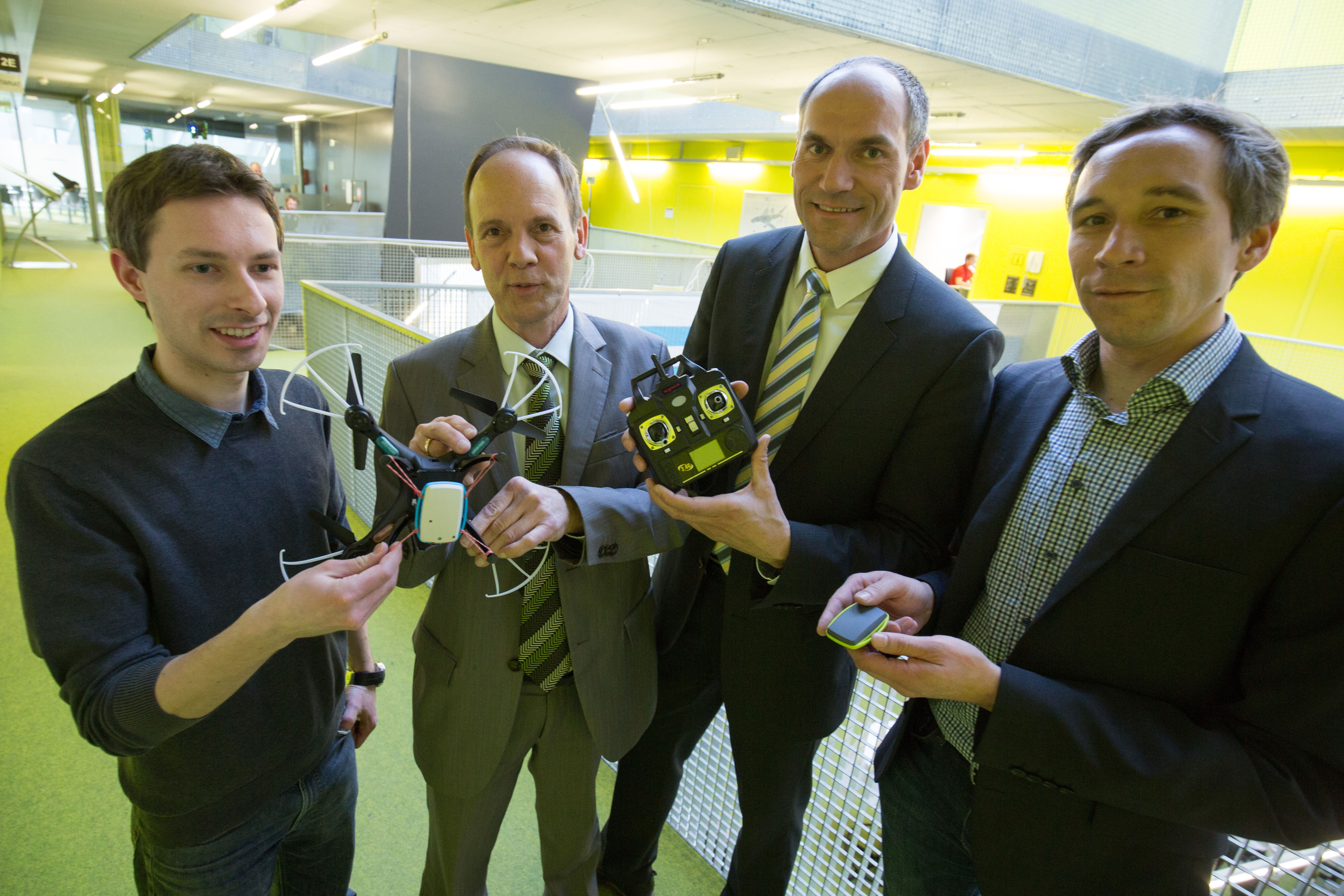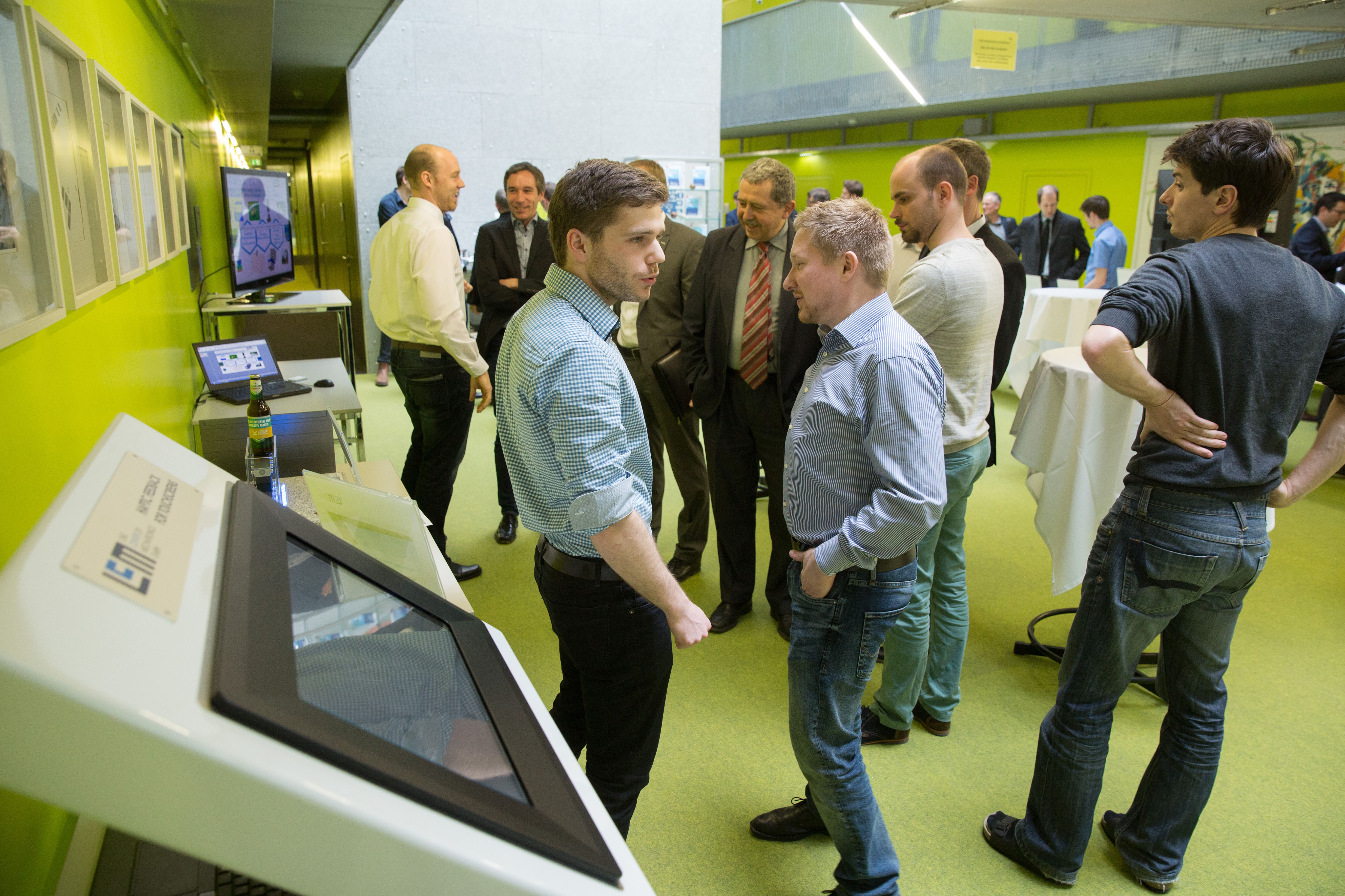 Die Live-Vorführung zur „Indoor-Localization“ bildete den krönenden Abschluss des Events: Eine ferngesteuerte Drohne wurde dabei in Echtzeit und vor den Augen der Besucher zentimetergenau lokalisiert. Das Potenzial dieser Technik ist enorm: So ermöglicht beispielweise die Analyse der Ohrenbewegungen von Kühen im Stall Rückschlüsse auf deren Gesundheit und Leistungsfähigkeit.