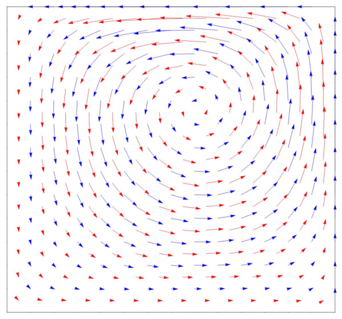 Abb. 2: Vektorplot des Geschwindigkeitsfeldes, das sich vor der aktiven Stegflanke bildet