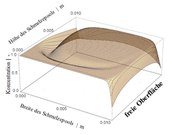 Abb. 3: Verteilung der flüchtigen Komponenten im rotierenden Schmelzepool